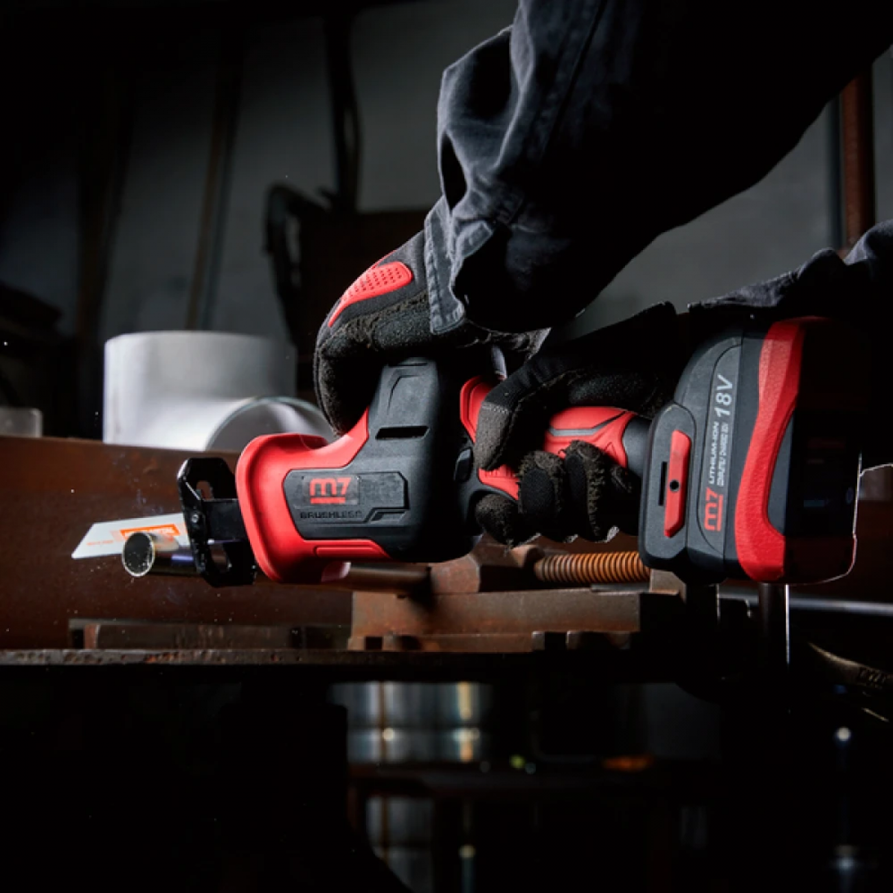Mighty Seven DRS-102A - професійний інструмент для розпилу широкого спектра матеріалів: від дерева і листів фанери до кольорових металів або сталі. Шабельна пила живиться від стандартних акумуляторів M7 18V. Вбудований безщітковий двигун дає змогу працювати довше від акумулятора. Швидкість ходу пилочки регулюється простим натисканням на курок під час роботи. Додатково в інструмент вбудована система швидкої заміни пильних полотен без ключа.
