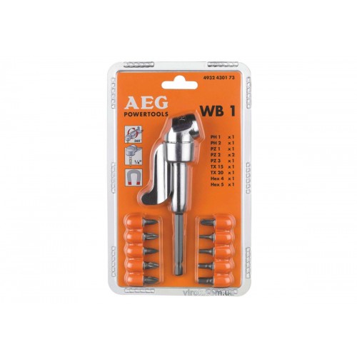 Насадка кутова до шуруповертів AEG з 10 викрутковими насадками (4932430173)