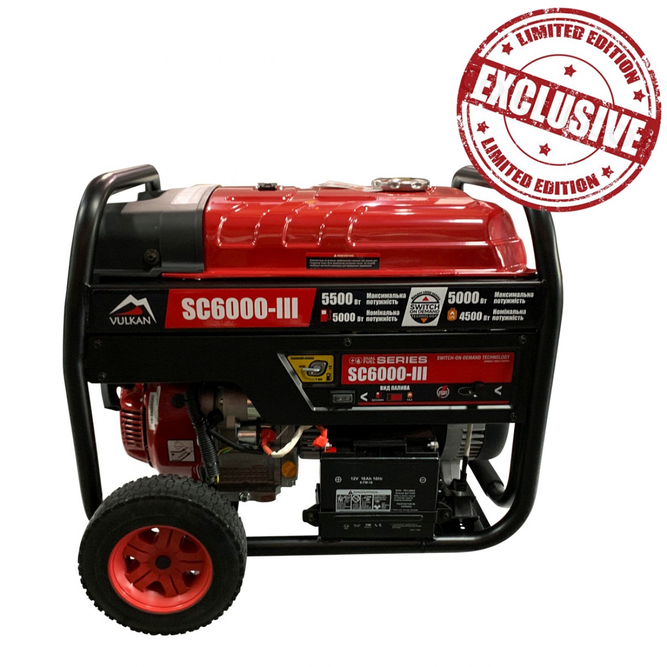 Генератор Vulkan SC6000-III має двигун, здатний працювати в двох режимах. У першому режимі електростанція живиться від бензину з октановим число 92 або 95. Завдяки цьому, максимальна вихідна потужність досягає 5,5 кВт. Другий режим є більш економічним і екологічно чистим ,оскільки SC6000-III починає працювати від зрідженої суміші газів LPG (пропан-бутану). Потужність на виході в такому випадку становить до 4,6 кВт. Для зручності, зміна режиму роботи здійснюється одним великим перемикачем, який винесений на корпус генератора.