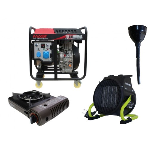 Дизельний генератор MAST GROUP YH11000AE + газова плитка Orcamp CK-505 + електричний обігрівач Gardyer HE2000