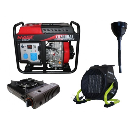 Дизельний генератор MAST GROUP YH7000AE + газова плитка Orcamp CK-505 + електричний обігрівач Gardyer HE2000