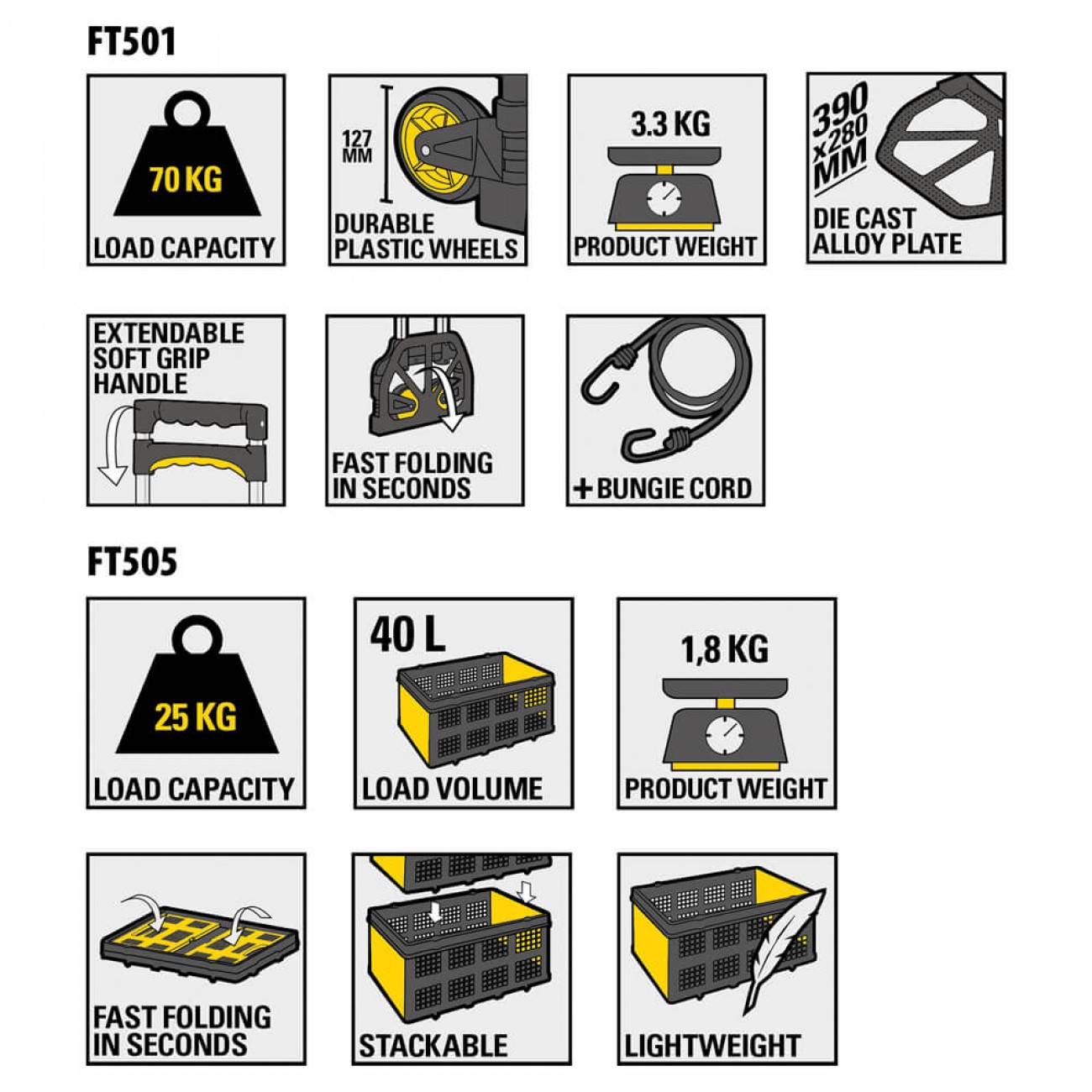 ✔ Портативний складний ящик SXWT-FT505 ідеально підходить у комплект до візка SXWT-FT501. Його вінтажопідйомність складає 25 кг з об’ємом 40 літрів. Має розмір 568х410х272 мм та легко і зручно складається до розміру 568х410х75 мм.