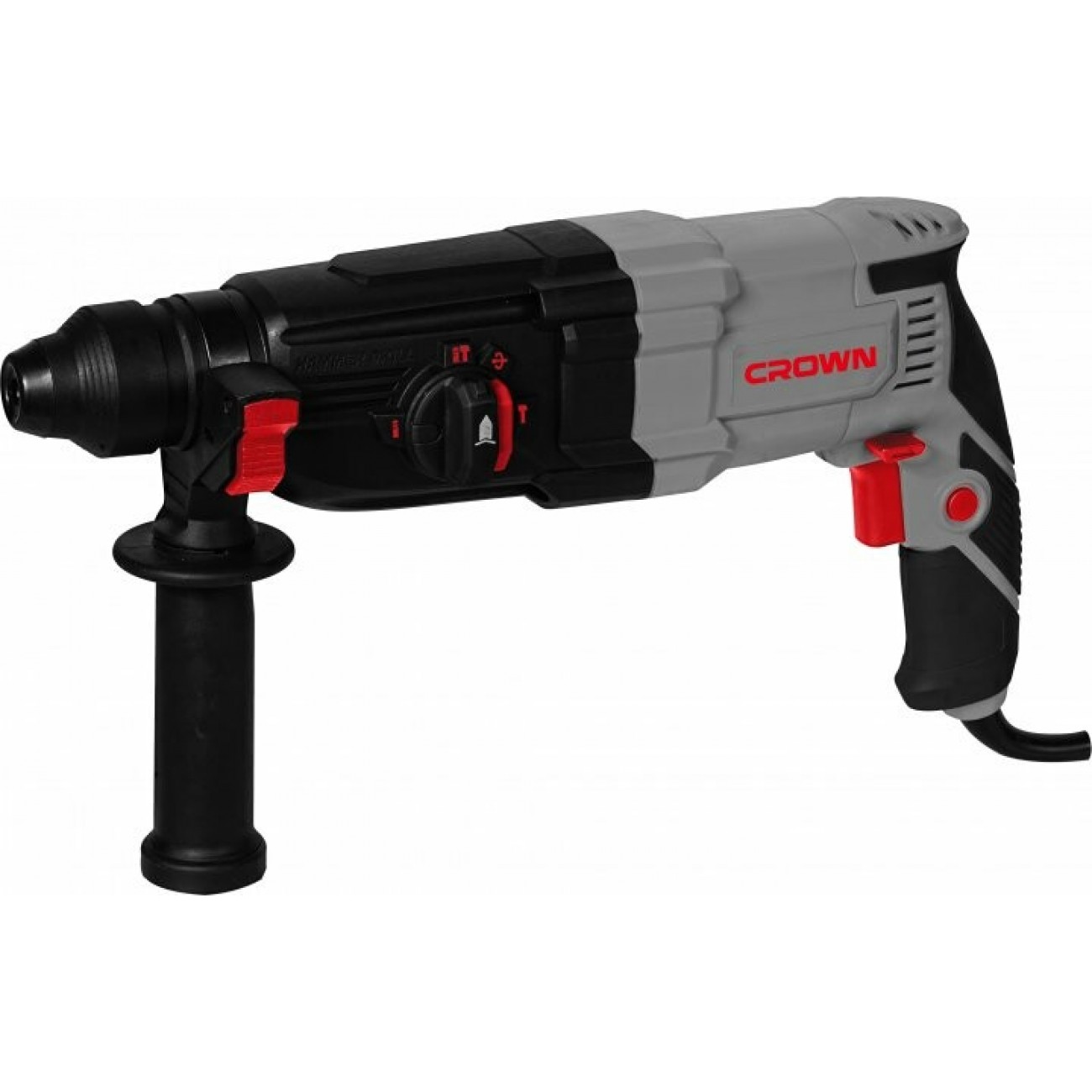 CROWN CT18212 BMC - надійний перфоратор для професійних завдань у домашніх умовах і не тільки. З потужним електродвигуном, він має високу ефективність при бурінні, свердлінні та ударних роботах. Відмінними рисами даної моделі є патрон SDS-Plus, електронне регулювання швидкості, 4-функціональний режим та функція реверсу, роблячи його універсальним та простим у використанні.