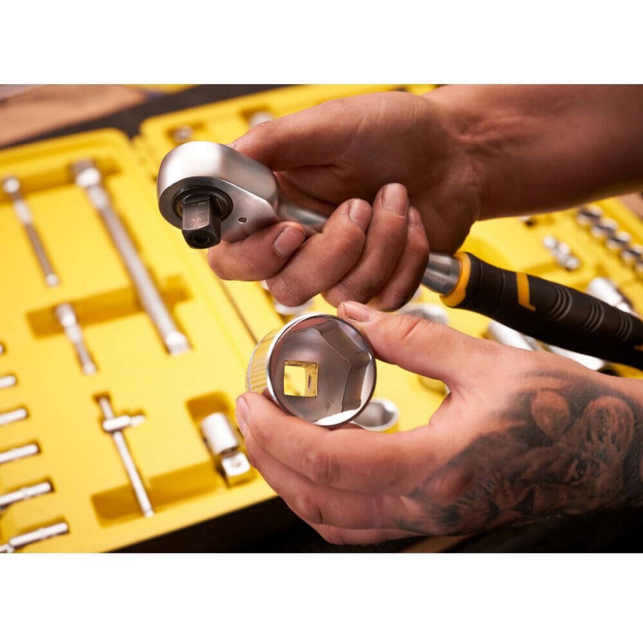 ✔ Рукоятки з храповим механізмом зі 120-ма зубцями (крок 3°) і двома собачками забезпечують більше міцних зубів у контакті та кращий доступ у порівнянні зі стандартною конструкцією ✔ Маркування для легкої ідентифікації ✔ Зручна ергономічна рукоятка для кращого контролю ✔ Конструкція запобігає випадковому перемиканню механізму ✔ Нові торцеві головки з насічкою для зручності хвата ✔ Звужена шийка для зручності роботи в місцях із утрудненим доступом ✔ Профіль Maxi D rive для максимального контакту між головкою та гранями кріпильного елемента ✔ Хромованадієва сталь, матова хромована поверхня