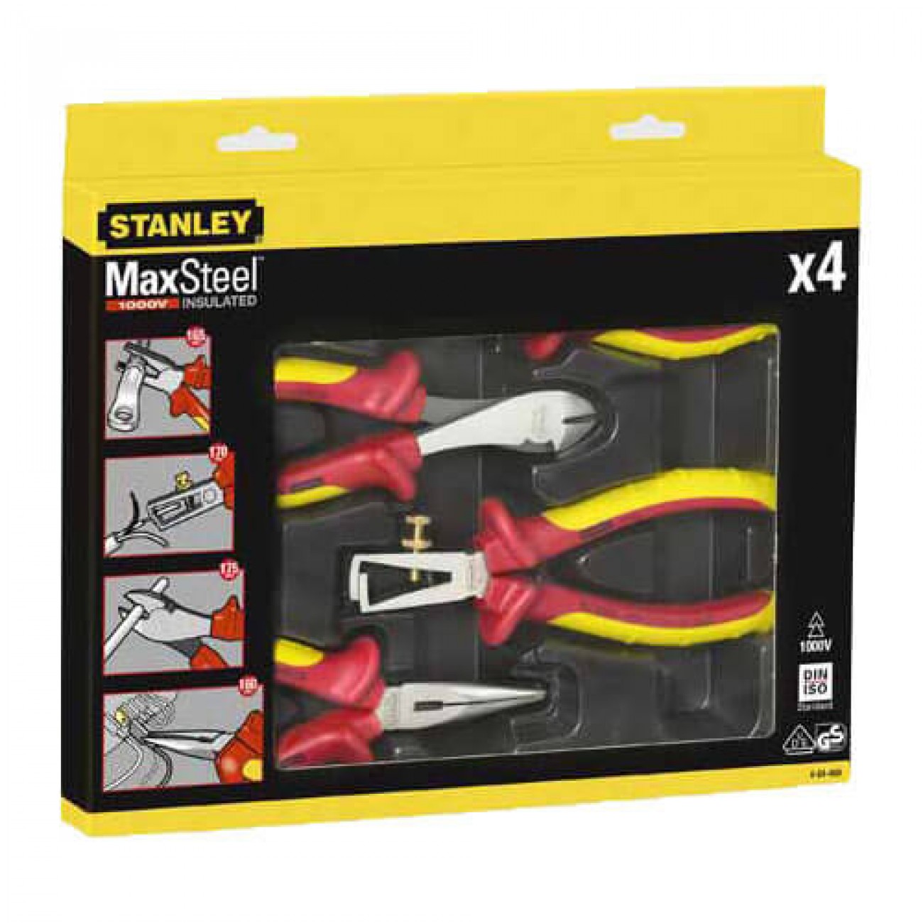 Основні характеристикиНабір з чотирьох шарнірно-губцевих інструментів для електрика MAXSTEEL VDE 1000V STANLEY 4-84-489