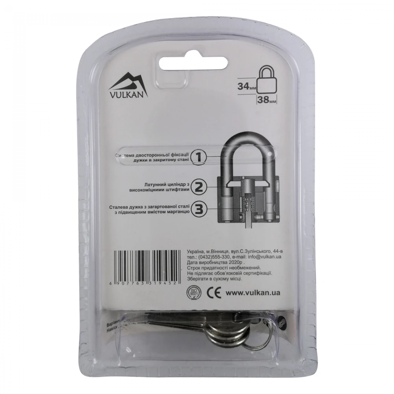 Навісний замок Vulkan BX0138 PVC має стандартний розмір 38 мм.