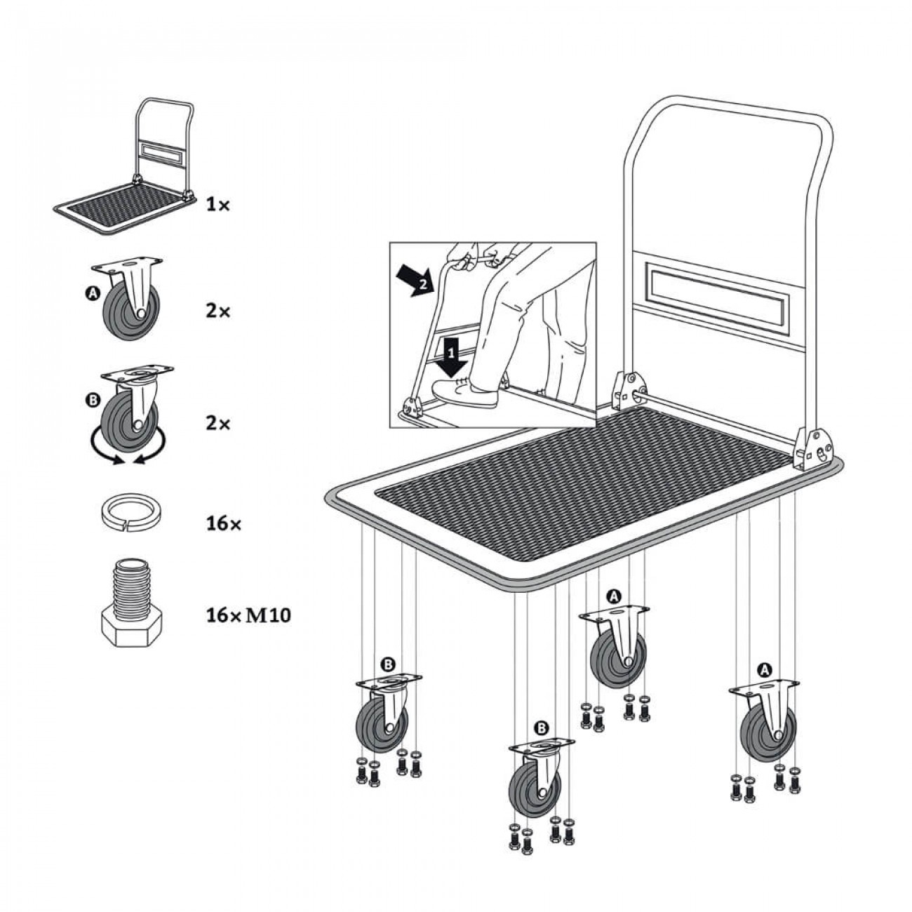 ✔ Вантажний візок-платформа має максимальну вантажопідйомність 300 кг і легко складається та розкладається за кілька секунд, що дозволяє швидко підготувати його до використання. Колеса з кульковими підшипниками, виготовлені з термопластичної гуми та поліпропілену, забезпечують легке і безпечне керування, стабільне пересування та зручне маневрування навіть при великому навантаженні. Легкість у використанні, швидке складання та розкладання дозволяють заощадити час при роботі з вантажами. Виготовлений із сталі, цей візок витримує високі навантаження і забезпечує тривалий термін служби.