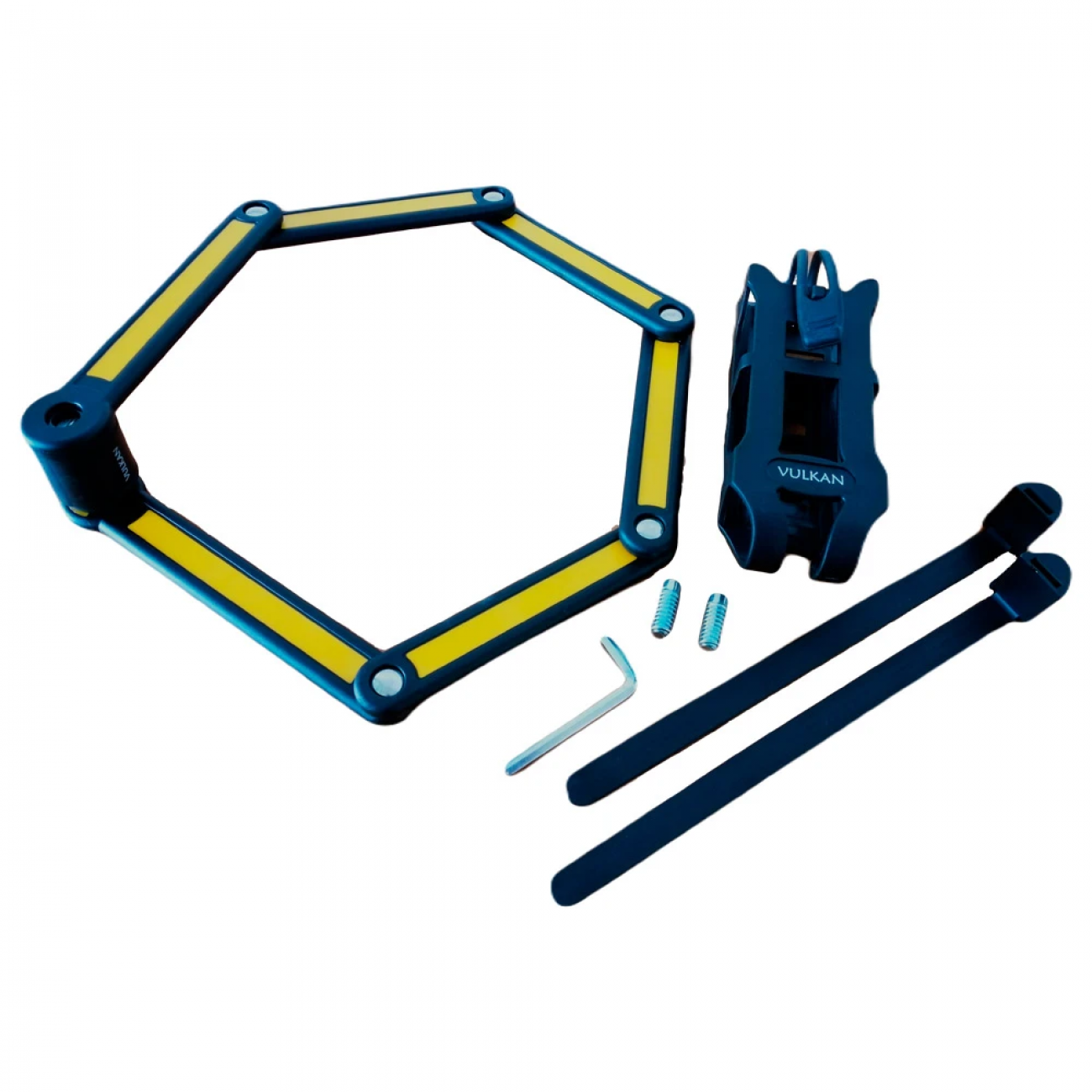 Vulkan TY3853-1 - велосипедний замок сегментного типу, призначений для захисту транспортного засобу від крадіжки. Сегменти виготовлені із загартованої сталі та додатково вкриті шаром ABS-пластику, який оберігає від корозії та не дряпає раму.