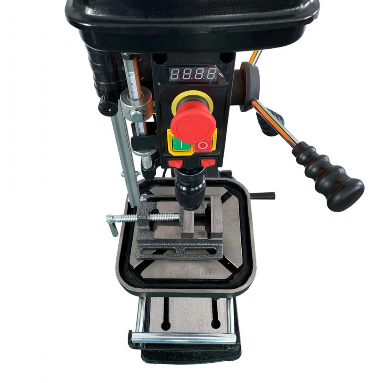 Верстат свердлильний GTM DB30 - професійне електричне обладнання для свердління глухих і наскрізних отворів в металевих, дерев'яних, пластикових і кам'яних деталях. Залежно від поставленого завдання може працювати з різними свердлами, зенкерами, розгорненнями, мітчиками і іншим інструментом. Дана модель має настільне виконання. Залежно від типу матеріалу, товщини або свердла, користувач може плавно налаштувати швидкість обертання патрона від 340 до 2200 об / хв. Для більшої зручності в конструкції передбачений цифровий індикатор поточної швидкості. Верстат комплектується лещатами розміром 75 мм, які розміщені на робочій майданчик. Залежно від деталі майданчик здатна обертатися на 360 градусів, підніматися або опускатися. GTM DB30 комплектується металевим швидкозажимним патроном на 16 мм і захисним екраном, для запобігання травм при роботі.